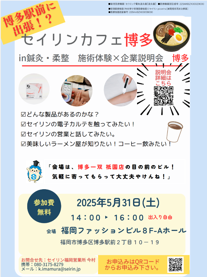 セイリンカフェは、鍼灸師を目指す学生さんも、すでに現場で活躍されている鍼灸師の方にも、気軽に楽しんでいただけるイベントです。