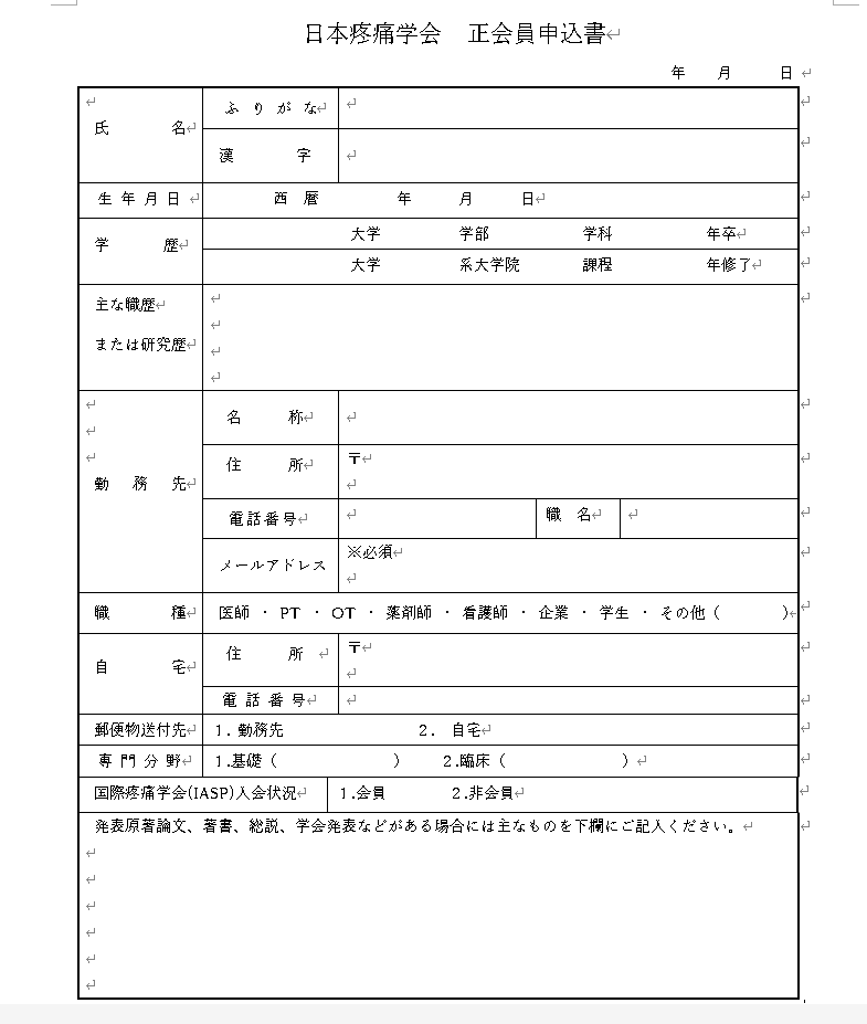 一般社団法人日本疼痛学会 申込書:https://jasp.pain-research-jasp.org/pdf/02_moushikomi.docx