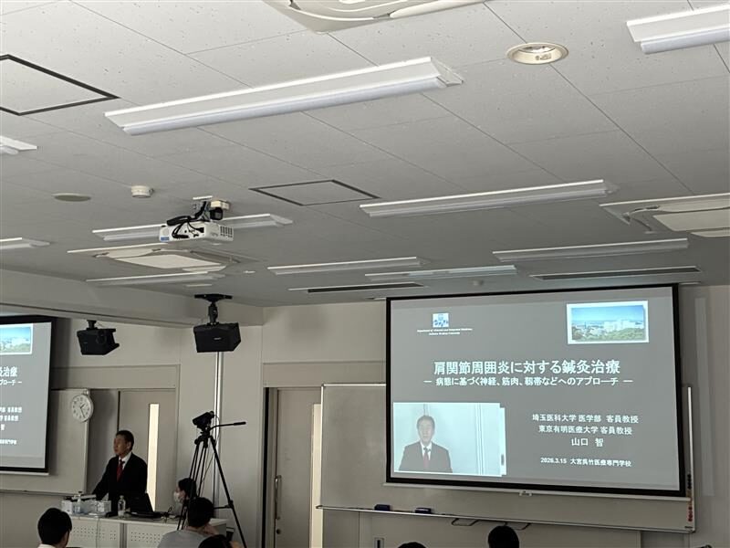 講義では、整形外科医、鍼灸師/理学療法士、鍼灸師がそれぞれの専門的視点から登壇し、肩関節疾患の鑑別、鍼灸治療と運動療法の適切な選択、医療機関との連携の重要性について解説が行われました。