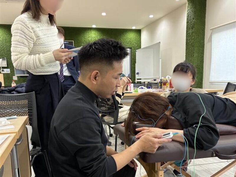 製品体験では使用したことがない鍼製品や機械製品を体験していただき、自然と会話が弾む時間になりました。