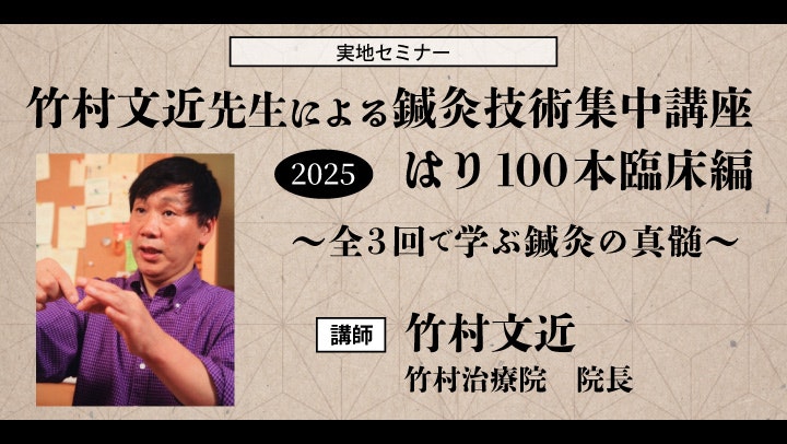 竹村文近先生による鍼灸技術集中講座2025 はり100本臨床編